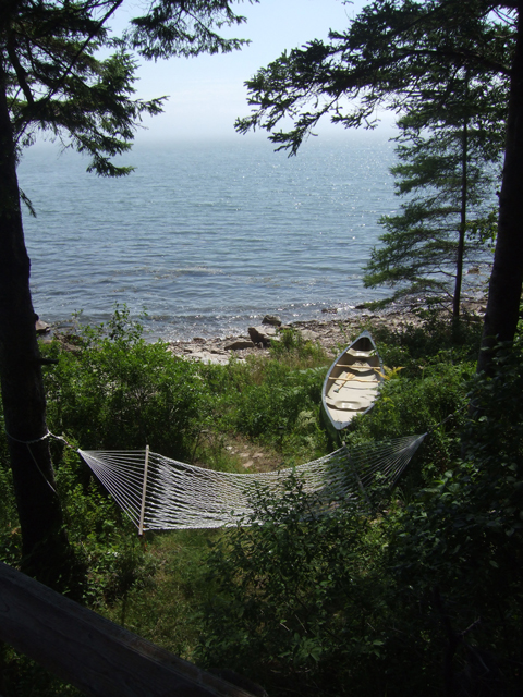 Some people who visit pass their entire stay on our front porch. Some days it is clear and bright. Other days you can watch the fog creep up the far shore, hesitate, and then recede south again to the mouth of the bay. Some days you can barely hear the surf. Other days it will lull you to sleep at night. Some days you awake to fog everywhere and the sound of the Petit Manan Light foghorn. Fog or not, you can hear the lobster boats in the bay hauling traps - often barely fifty yards away. But the smell of the sea is always there.