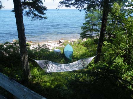 The house itself has four cozy bedrooms. The porch in front (east side) segues into a large deck running along the south side of the house. Every summer since 1968 at least one member of the family has brought a cat for the summer.