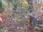 We have also opened up the woods around the house by thinning saplings and cutting lower branches. With White Pine long gone, Red Spruce is the surviving noble conifer of the Down East forest. On our property we have favored Red Spruce by thinning any Balsam Firs and Red Maples that crowd them. In any event the trees that surround the house are mostly Red Spruce which are heavily grazed by red squirrels and chipmunks. Other trees on the property include Larch (Tamarack - also locally called Hackmatack), Balsam Fir, White Spruce and Red Maple. The hammock is strung between a Red Spruce and a White Spruce. There is an extremely attractive Larch directly in front of the house. In a heavy breeze, while Red Spruce stiffly vibrate the Larch bends and whips gracefully to each gust.